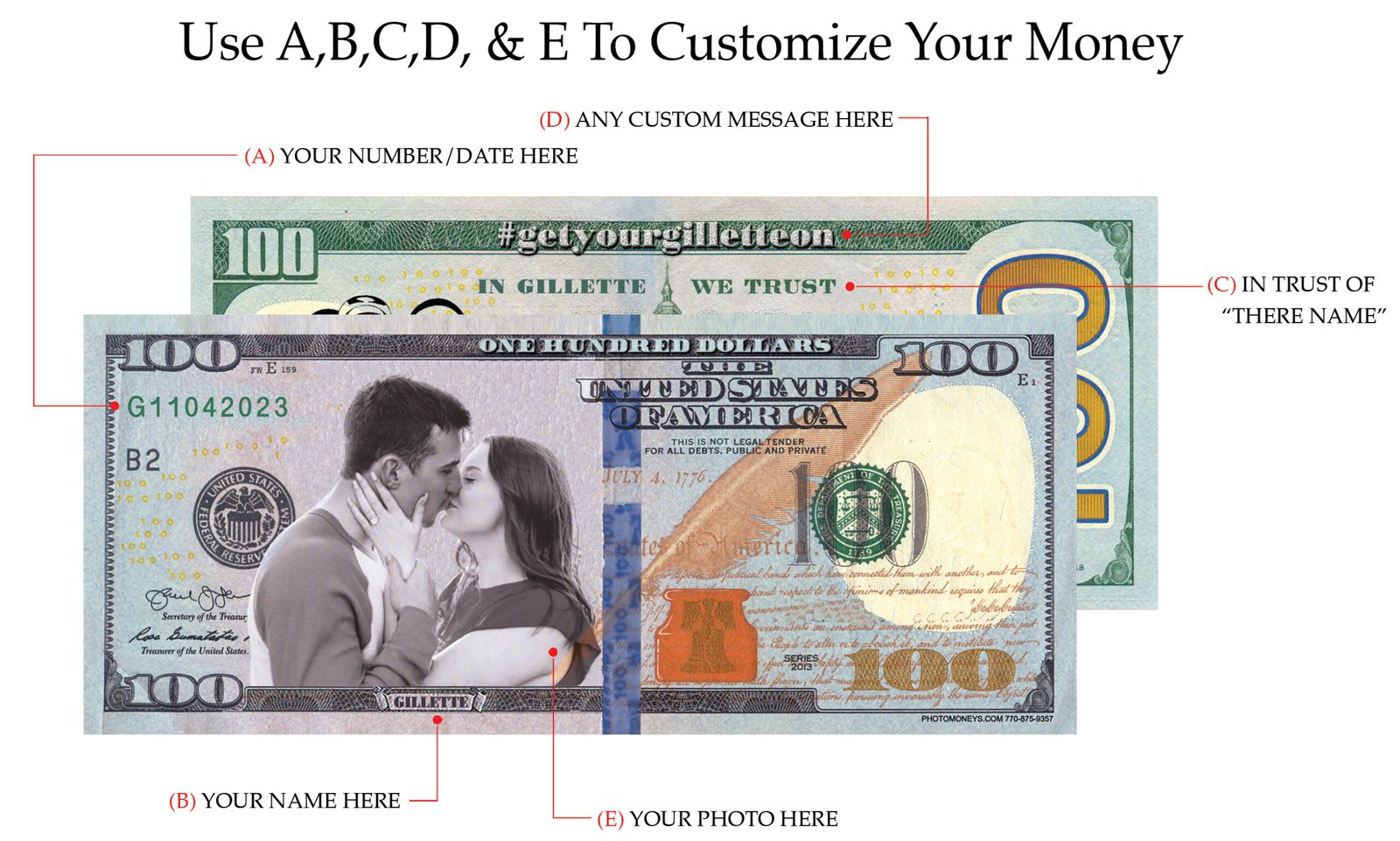 These bills are NOT real currency. Intended only for parties, weddings, photoshoots, décor, or promotional use. If you need them for business marketing, we can add your logo, name, or message for an additional fee.